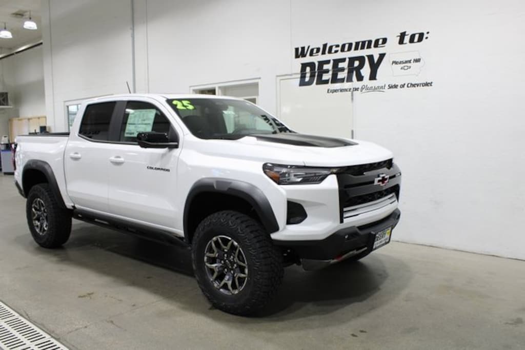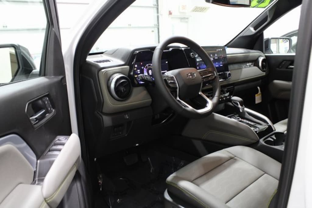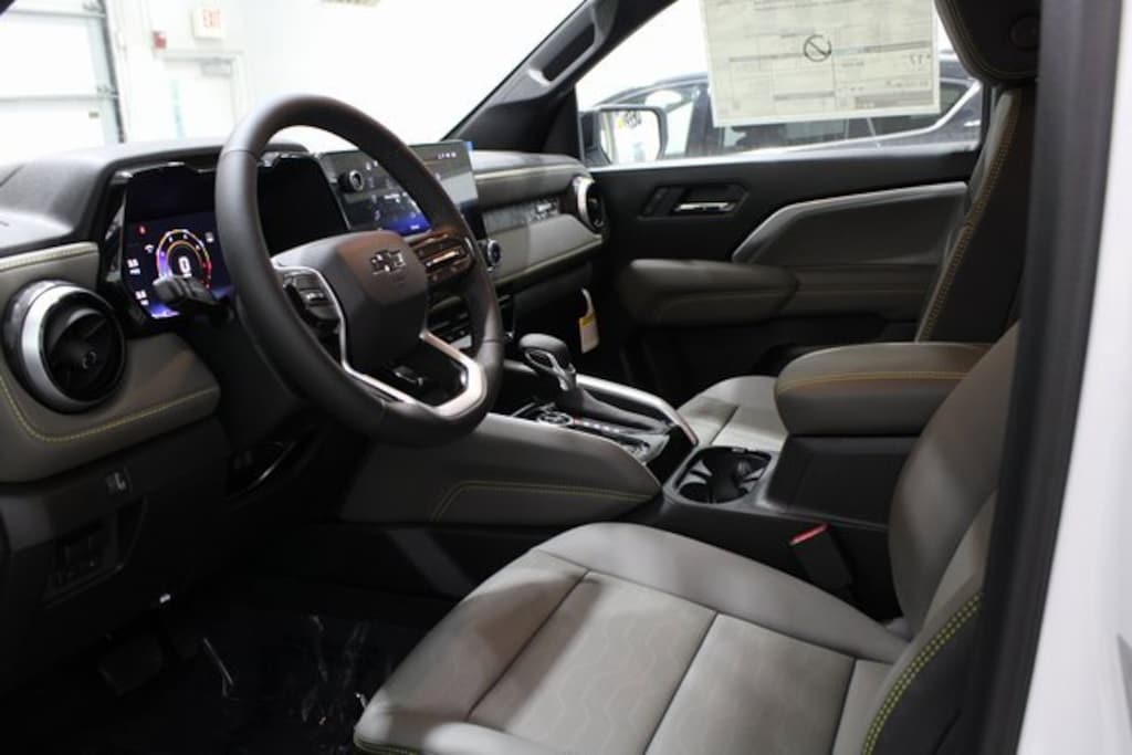 Summit White 2025 Chevrolet Preferred Equipment Group 4ZR (Automatic Emergency Braking, Chevy Safety Assist, Following Distance Indicator, Forward Collision Alert, Front Pedestrian & Bicyclist Braking, IntelliBeam Automatic High Beam On/Off, and Lane Keep Assist w/Lane Departure Warning), Technology Package (Adaptive Cruise Control, Bose Premium 7-Speaker Audio System Feature, HD Surround Vision, and Rear Pedestrian Alert), ZR2 Off-Road Package, 6-Speaker Audio System Feature, Navigation System, Power Sliding Glass w/Manual Shade Sunroof, Radio data system, Radio: 11.3 Diagonal Advanced Color LCD Display, SiriusXM Trial Subscription, Steering Wheel Mounted Audio Controls, Wireless Phone Projection, 3.42 Rear Axle Ratio, 4-Way Manual Passenger Seat Adjuster, 4-Wheel Disc Brakes, 6 Speakers, 8-Way Power Driver Seat Adjuster, ABS brakes, Air Conditioning, Alloy wheels, AM/FM radio: SiriusXM, Apple CarPlay/Android Auto, Auto High-beam Headlights, Auto-dimming Rear-View mirror, Automatic temperature control, Black Nameplates (LPO), Brake assist, Compass, Delay-off headlights, Driver & Front Passenger Ventilated Seats, Driver door bin, Driver Memory Settings, Driver Seatback Map Pocket, Driver vanity mirror, Dual front impact airbags, Dual front side impact airbags, Electronic Stability Control, Emergency communication system: OnStar, Front anti-roll bar, Front Bucket Seats, Front Center Armrest, Front dual zone A/C, Front fog lights, Front License Plate Kit, Front Passenger Seatback Map Pocket, Front reading lights, Front wheel independent suspension, Gloss Black Tailgate Lettering (LPO), Heated door mirrors, Heated Driver & Front Passenger Seats, Heated front seats, Heated steering wheel, Illuminated entry, Low tire pressure warning, Memory seat, Occupant sensing airbag, Outside temperature display, Overhead airbag, Overhead console, Panic alarm, Passenger door bin, Passenger vanity mirror, Perforated Leather-Appointed Seat Trim, Power door mirrors, Power Driver Lumbar Control Seat Adjuster, Power driver seat, Power steering, Power windows, Rear reading lights, Rear seat center armrest, Rear step bumper, Rear window defroster, Remote keyless entry, Security system, Speed control, Speed-sensing steering, Split folding rear seat, Steering wheel mounted audio controls, Tachometer, Telescoping steering wheel, Tilt steering wheel, Traction control, Trip computer, Variably intermittent wipers, Ventilated front seats, and Wheels: 17 x 8 Graphite & Oxide Gold Aluminum. Colorado 4D Crew Cab ZR2 2.7L I4 Turbocharged DOHC 16V LEV3-ULEV50 310hp 17/17 City/Highway MPG 8-Speed Automatic 4WD
