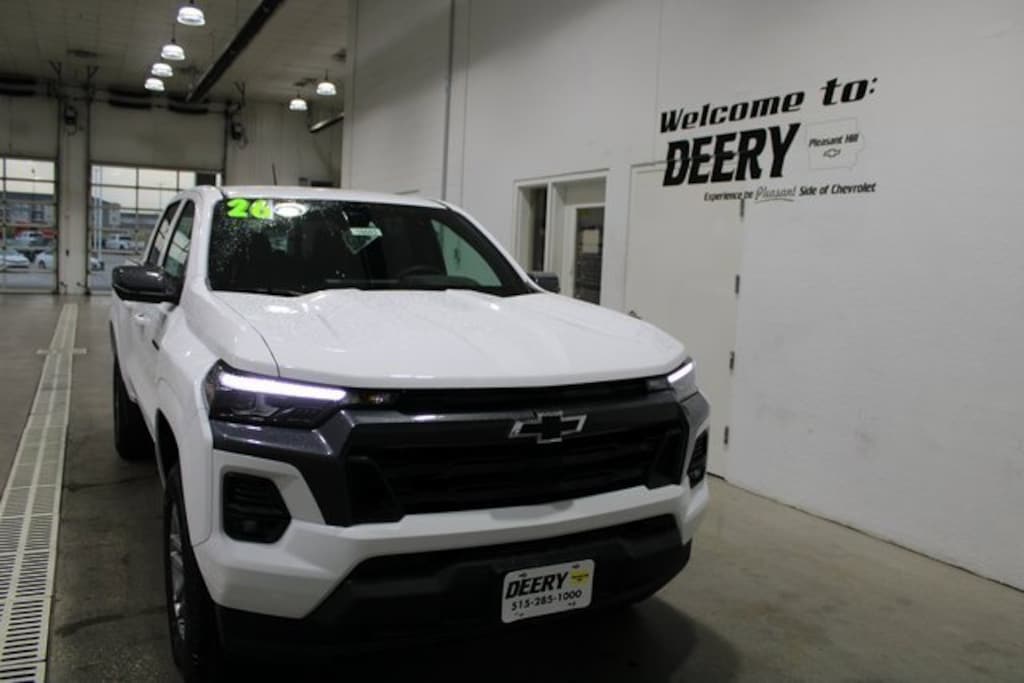 Summit White 2026 Chevrolet LT Convenience Package (120-Volt Bed-Mounted Power Outlet, 120-Volt Power Outlet, Driver Seatback Map Pocket, Dual Rear USB Ports (Charge Only), Evotex Seat Trim, Front LED Fog Lamps, Heated Steering Wheel, LED Daytime Running Lamps, LED Headlamps, LED Stop Tail Lamp, Rear Center Armrest, and Wireless Phone Charging), Preferred Equipment Group 4LT (Automatic Emergency Braking, Chevy Safety Assist, Following Distance Indicator, Forward Collision Alert, Front Pedestrian & Bicyclist Braking, IntelliBeam Automatic High Beam On/Off, and Lane Keep Assist w/Lane Departure Warning), Technology Package (Adaptive Cruise Control, HD Surround Vision, and Rear Pedestrian Alert), 3.42 Rear Axle Ratio, Navigation System, 4-Way Manual Passenger Seat Adjuster, 4-Wheel Disc Brakes, 6 Speakers, 6-Speaker Audio System Feature, 8-Way Power Driver Seat Adjuster, ABS brakes, Air Conditioning, Alloy wheels, AM/FM radio: SiriusXM with 360L, Apple CarPlay/Android Auto, Auto High-beam Headlights, Auto-dimming Rear-View mirror, Automatic temperature control, Black Bowtie Emblem (LPO), Black Nameplates (LPO), Brake assist, Bumpers: body-color, Cloth Seat Trim, Compass, Delay-off headlights, Driver & Front Passenger Heated Seats, Driver door bin, Driver vanity mirror, Dual front impact airbags, Dual front side impact airbags, Electronic Stability Control, Emergency communication system: OnStar, Front anti-roll bar, Front Bucket Seats, Front Center Armrest, Front dual zone A/C, Front License Plate Kit, Front Passenger Seatback Map Pocket, Front reading lights, Front wheel independent suspension, Gloss Black Tailgate Lettering (LPO), Heated door mirrors, Heated front seats, Illuminated entry, Low tire pressure warning, Occupant sensing airbag, Outside temperature display, Overhead airbag, Overhead console, Panic alarm, Passenger door bin, Passenger vanity mirror, Power door mirrors, Power Driver Lumbar Control Seat Adjuster, Power driver seat, Power steering, Power windows, Radio data system, Radio: 11.3 Diagonal Advanced Color LCD Display, Rear reading lights, Rear step bumper, Rear window defroster, Remote keyless entry, Security system, SiriusXM w/360L Trial Subscription, Speed control, Speed-sensing steering, Split folding rear seat, Steering Wheel Mounted Audio Controls, Steering wheel mounted audio controls, Tachometer, Telescoping steering wheel, Tilt steering wheel, Traction control, Trip computer, Variably intermittent wipers, Wheels: 17 x 8 Argent Metallic Aluminum, and Wireless Phone Projection. Colorado 4D Crew Cab LT 2.7L I4 Turbocharged DOHC 16V LEV3-ULEV50 310hp 18/23 City/Highway MPG 8-Speed Automatic 4WD