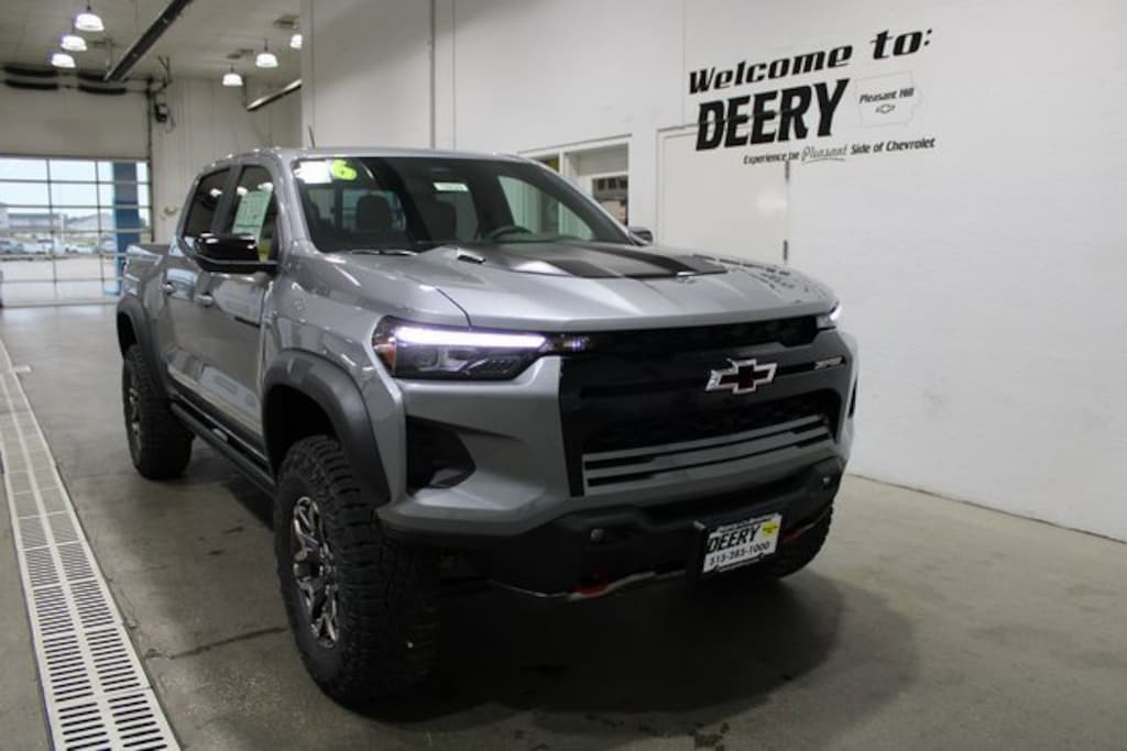Sterling Gray Metallic 2026 Chevrolet Preferred Equipment Group 4ZR (Automatic Emergency Braking, Chevy Safety Assist, Following Distance Indicator, Forward Collision Alert, Front Pedestrian & Bicyclist Braking, IntelliBeam Automatic High Beam On/Off, and Lane Keep Assist w/Lane Departure Warning), Technology Package (Adaptive Cruise Control, Bose Premium 7-Speaker Audio System Feature, HD Surround Vision, and Rear Pedestrian Alert), ZR2 Off-Road Package, Navigation System, 3.42 Rear Axle Ratio, 4-Way Manual Passenger Seat Adjuster, 4-Wheel Disc Brakes, 6 Speakers, 6-Speaker Audio System Feature, 8-Way Power Driver Seat Adjuster, ABS brakes, Air Conditioning, Alloy wheels, AM/FM radio: SiriusXM with 360L, Apple CarPlay/Android Auto, Auto High-beam Headlights, Auto-dimming Rear-View mirror, Automatic temperature control, Black Nameplates (LPO), Brake assist, Compass, Delay-off headlights, Driver & Front Passenger Heated Seats, Driver & Front Passenger Ventilated Seats, Driver door bin, Driver Memory Settings, Driver Seatback Map Pocket, Driver vanity mirror, Dual front impact airbags, Dual front side impact airbags, Electronic Stability Control, Emergency communication system: OnStar, Front anti-roll bar, Front Bucket Seats, Front Center Armrest, Front dual zone A/C, Front fog lights, Front License Plate Kit, Front Passenger Seatback Map Pocket, Front reading lights, Front wheel independent suspension, Gloss Black Tailgate Lettering (LPO), Heated door mirrors, Heated front seats, Heated steering wheel, Illuminated entry, Low tire pressure warning, Memory seat, Occupant sensing airbag, Outside temperature display, Overhead airbag, Overhead console, Panic alarm, Passenger door bin, Passenger vanity mirror, Perforated Leather-Appointed Seat Trim, Power door mirrors, Power Driver Lumbar Control Seat Adjuster, Power driver seat, Power Sliding Glass w/Manual Shade Sunroof, Power steering, Power windows, Radio data system, Radio: 11.3 Diagonal Advanced Color LCD Display, Rear reading lights, Rear seat center armrest, Rear step bumper, Rear window defroster, Remote keyless entry, Security system, SiriusXM w/360L Trial Subscription, Speed control, Speed-sensing steering, Split folding rear seat, Steering Wheel Mounted Audio Controls, Steering wheel mounted audio controls, Tachometer, Telescoping steering wheel, Tilt steering wheel, Traction control, Trip computer, Variably intermittent wipers, Ventilated front seats, Wheels: 17 x 8 Graphite & Oxide Gold Aluminum, and Wireless Phone Projection. Colorado 4D Crew Cab ZR2 2.7L I4 Turbocharged DOHC 16V LEV3-ULEV50 310hp 18/23 City/Highway MPG 8-Speed Automatic 4WD