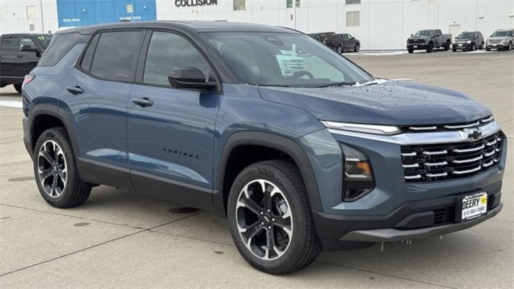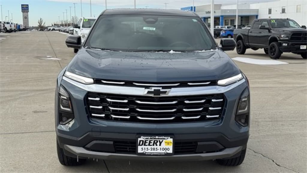 Lakeshore Blue Metallic 2026 Chevrolet Convenience Package II (2-Way Power Driver Lumbar Control Seat Adjuster, AutoSense Hands-Free Power Programmable Liftgate, Cabin Humidity & Windshield Sensor, Driver 8-Way Power Seat Adjuster, Dual-Zone Automatic Climate Control, Evotex Seat Trim, Heated Wiper Park, Intermittent Front Rain-Sensing Wipers, Overhead Sunglass Storage, Programmable Universal Home Remote, and Wireless Phone Charging for Portable Devices), Safety & Technology Package (Front Fog Lamps, HD Surround Vision, Rear Pedestrian Alert, and Traffic Sign Recognition), Navigation System, 3.47 Final Drive Axle Ratio, 4-Wheel Disc Brakes, 6 Speakers, ABS brakes, Air Conditioning, Alloy wheels, AM/FM radio: SiriusXM, Auto High-beam Headlights, Brake assist, Bumpers: body-color, Cloth Seat Trim, Compass, Delay-off headlights, Driver 6-Way Manual Seat Adjuster, Driver door bin, Driver vanity mirror, Dual front impact airbags, Dual front side impact airbags, Electronic Stability Control, Emergency communication system: OnStar and Chevrolet connected services capable, Four wheel independent suspension, Front & Rear Black Bowtie Emblems (LPO), Front anti-roll bar, Front Bucket Seats, Front Center Armrest, Front Passenger 4-Way Manual Seat Adjuster, Front reading lights, Fully automatic headlights, Gloss Black Emblem Kit (LPO), Heated door mirrors, Heated Driver & Front Passenger Seats, Heated front seats, Heated steering wheel, Illuminated entry, Low tire pressure warning, Mosaic Black Metallic Roof, Mosaic Black Mirror Caps, Occupant sensing airbag, Outside temperature display, Overhead airbag, Overhead console, Panic alarm, Passenger door bin, Passenger vanity mirror, Power door mirrors, Power steering, Power windows, Premium audio system: Chevrolet Infotainment 3, Radio data system, Radio: 11.3 Diagonal Advanced Color LCD Display, Rear anti-roll bar, Rear Camera Mirror Washer, Rear reading lights, Rear seat center armrest, Rear window defroster, Rear window wiper, Remote keyless entry, Security system, SiriusXM w/360L Trial Subscription, Speed control, Speed-sensing steering, Split folding rear seat, Spoiler, Steering wheel mounted audio controls, Tachometer, Telescoping steering wheel, Tilt steering wheel, Traction control, Trip computer, Variably intermittent wipers, Wheels: 17 Grazen Metallic Machined-Face Aluminum, and Wheels: 19 Black Machined-Face Aluminum. Equinox 4D Sport Utility LT 1.5L DOHC 24/29 City/Highway MPG 8-Speed Automatic AWD