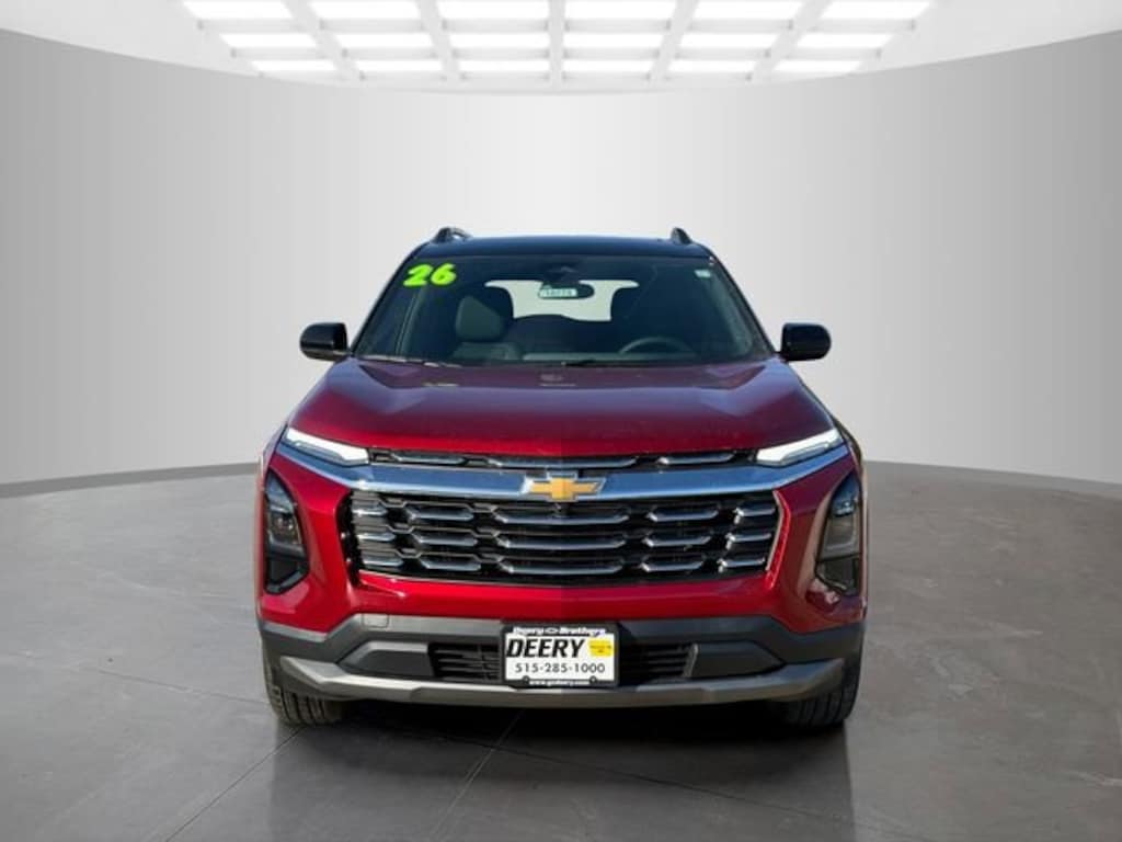 Radiant Red Tintcoat 2026 Chevrolet Navigation System, 3.47 Final Drive Axle Ratio, 4-Wheel Disc Brakes, 6 Speakers, ABS brakes, Air Conditioning, Alloy wheels, AM/FM radio: SiriusXM, Auto High-beam Headlights, Brake assist, Bumpers: body-color, Cloth Seat Trim, Compass, Delay-off headlights, Driver 6-Way Manual Seat Adjuster, Driver door bin, Driver vanity mirror, Dual front impact airbags, Dual front side impact airbags, Electronic Stability Control, Emergency communication system: OnStar and Chevrolet connected services capable, Four wheel independent suspension, Front anti-roll bar, Front Bucket Seats, Front Center Armrest, Front Passenger 4-Way Manual Seat Adjuster, Front reading lights, Fully automatic headlights, Heated door mirrors, Heated front seats, Heated steering wheel, Illuminated entry, Low tire pressure warning, Occupant sensing airbag, Outside temperature display, Overhead airbag, Overhead console, Panic alarm, Passenger door bin, Passenger vanity mirror, Power door mirrors, Power steering, Power windows, Premium audio system: Chevrolet Infotainment 3, Radio data system, Radio: 11.3 Diagonal Advanced Color LCD Display, Rear anti-roll bar, Rear reading lights, Rear seat center armrest, Rear window defroster, Rear window wiper, Remote keyless entry, Security system, Speed control, Speed-sensing steering, Split folding rear seat, Spoiler, Steering wheel mounted audio controls, Tachometer, Telescoping steering wheel, Tilt steering wheel, Traction control, Trip computer, Variably intermittent wipers, and Wheels: 17 Grazen Metallic Machined-Face Aluminum. Equinox 4D Sport Utility LT AWD 1.5L DOHC 25/29 City/Highway MPG 8-Speed Automatic AWD Price includes: $2,000 - Exp. 06/30/2026$2,000 - $ExpDate$2,000 - $ExpDate$1,000 DEERY TRADE ASSIST FOR QUAILIFIED TRADES INS. CALL STORE FOR DETAILS