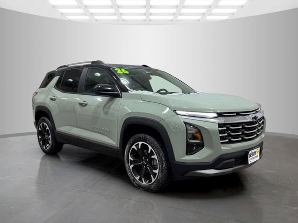 Cacti Green 2026 Chevrolet Convenience Package II (2-Way Power Driver Lumbar Control Seat Adjuster, Driver 8-Way Power Seat Adjuster, Dual-Zone Automatic Climate Control, Evotex Seat Trim, Heated Wiper Park, Intermittent Front Rain-Sensing Wipers, Overhead Sunglass Storage, and Programmable Universal Home Remote), 3.47 Final Drive Axle Ratio, Navigation System, Power Dual Glass Panoramic Sliding Sunroof, Roof Rails, 4-Wheel Disc Brakes, 6 Speakers, ABS brakes, Air Conditioning, Alloy wheels, AM/FM radio: SiriusXM, Auto High-beam Headlights, Brake assist, Bumpers: body-color, Cloth Seat Trim, Compass, Delay-off headlights, Driver 6-Way Manual Seat Adjuster, Driver door bin, Driver vanity mirror, Dual front impact airbags, Dual front side impact airbags, Electronic Stability Control, Emergency communication system: OnStar and Chevrolet connected services capable, Four wheel independent suspension, Front anti-roll bar, Front Bucket Seats, Front Center Armrest, Front Passenger 4-Way Manual Seat Adjuster, Front reading lights, Fully automatic headlights, Heated door mirrors, Heated front seats, Heated steering wheel, Illuminated entry, Low tire pressure warning, Mosaic Black Metallic Roof, Mosaic Black Mirror Caps, Occupant sensing airbag, Outside temperature display, Overhead airbag, Overhead console, Panic alarm, Passenger door bin, Passenger vanity mirror, Power door mirrors, Power steering, Power windows, Premium audio system: Chevrolet Infotainment 3, Radio data system, Radio: 11.3 Diagonal Advanced Color LCD Display, Rear anti-roll bar, Rear reading lights, Rear seat center armrest, Rear window defroster, Rear window wiper, Remote keyless entry, Security system, Speed control, Speed-sensing steering, Split folding rear seat, Spoiler, Steering wheel mounted audio controls, Tachometer, Telescoping steering wheel, Tilt steering wheel, Traction control, Trip computer, Variably intermittent wipers, Wheels: 17 Grazen Metallic Machined-Face Aluminum, and Wheels: 19 Black Machined-Face Aluminum. Equinox 4D Sport Utility LT AWD 1.5L DOHC 25/29 City/Highway MPG 8-Speed Automatic AWD Price includes: $1,000 - Exp. 09/30/2026$1,000 DEERY TRADE ASSIST FOR QUAILIFIED TRADES INS. CALL STORE FOR DETAILS