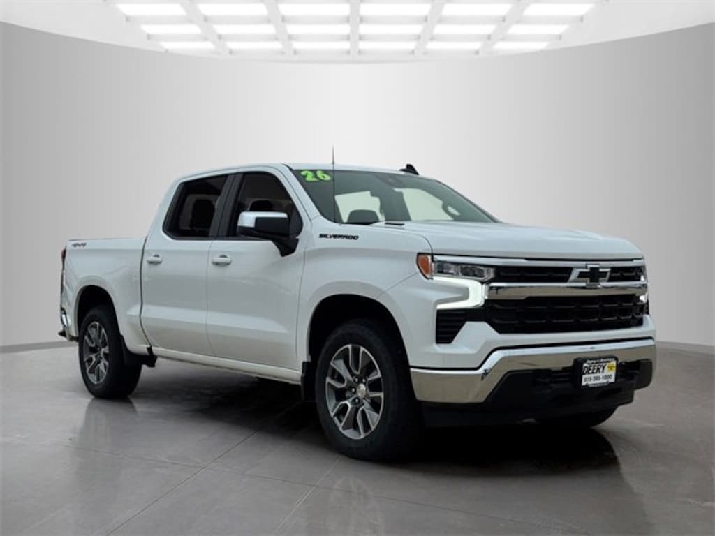 Summit White 2026 Chevrolet Convenience Package (10-Way Power Driver Seat w/Lumbar, 120-Volt Bed Mounted Power Outlet, 120-Volt Interior Power Outlet, Dual Rear USB Ports (Charge Only), Dual-Zone Automatic Climate Control, Heated Driver & Front Outboard Passenger Seats, Heated Steering Wheel, Keyless Open & Start, LED Cargo Area Lighting, Manual Tilt/Telescoping Steering Column, and Wrapped Steering Wheel), High Capacity Suspension Package, Standard Suspension Package, Trailering Package (Hitch Guidance), Speed-sensing steering, Traction control, 12.3 Multicolor Reconfigurable Digital Display, 3.42 Rear Axle Ratio, 4-Wheel Disc Brakes, 40/20/40 Front Split-Bench Seat, 6 Speakers, 6-Speaker Audio System, ABS brakes, Air Conditioning, All-Star Edition, Alloy wheels, AM/FM radio: SiriusXM with 360L, Apple CarPlay/Android Auto, Auto High-beam Headlights, Auto-Locking Rear Differential, Automatic Emergency Braking, Automatic temperature control, Bluetooth® For Phone, Brake assist, Bumpers: chrome, Chrome Mirror Caps, Cloth Seat Trim, Color-Keyed Carpeting Floor Covering, Compass, Deep-Tinted Glass, Delay-off headlights, Driver door bin, Driver vanity mirror, Dual front impact airbags, Dual front side impact airbags, Electric Rear-Window Defogger, Electronic Cruise Control, Electronic Stability Control, Emergency communication system: OnStar, Following Distance Indicator, Forward Collision Alert, Front anti-roll bar, Front Center Armrest w/Storage, Front dual zone A/C, Front Frame-Mounted Black Recovery Hooks, Front License Plate Kit, Front Pedestrian Braking, Front reading lights, Front wheel independent suspension, Fully automatic headlights, HD Rear Vision Camera, Heated door mirrors, Heated front seats, Heated steering wheel, Illuminated entry, Integrated Trailer Brake Controller, IntelliBeam Automatic High Beam On/Off, Lane Keep Assist w/Lane Departure Warning, Low tire pressure warning, Occupant sensing airbag, OnStar Services Capable, Outside temperature display, Overhead airbag, Overhead console, Panic alarm, Passenger door bin, Passenger vanity mirror, Power door mirrors, Power driver seat, Power Front Windows w/Driver Express Up/Down, Power Front Windows w/Passenger Express Down, Power Rear Windows w/Express Down, Power steering, Power windows, Premium audio system: Chevrolet Infotainment 3 Premium, Radio data system, Radio: Chevrolet Infotainment 3 Premium System, Rear 60/40 Folding Bench Seat (Folds Up), Rear reading lights, Rear step bumper, Rear window defroster, Remote keyless entry, Remote Vehicle Starter System, Security system, SiriusXM w/360L Trial Subscription, Speed control, Split folding rear seat, Steering Wheel Audio Controls, Steering wheel mounted audio controls, Tachometer, Teen Driver, Telescoping steering wheel, Theft Deterrent System (Unauthorized Entry), Tilt steering wheel, Tire Pressure Monitoring System, Trip computer, Variably intermittent wipers, Voltmeter, Wheels: 18 x 8.5 Bright Silver Painted Aluminum, Wheels: 20 x 9 Painted Aluminum, and Wi-Fi Hot Spot Capable. Silverado 1500 4D Crew Cab LT LT1 2.7L I4 Turbocharged DOHC 16V LEV3-SULEV30 310hp 17/21 City/Highway MPG 8-Speed Automatic 4WD Price includes: $1000 - Bonus Cash. Exp. 02/02/2026 $3000 - Customer Cash. Exp. 02/02/2026