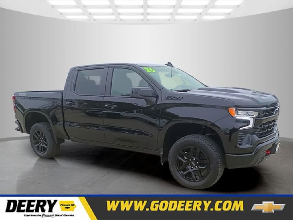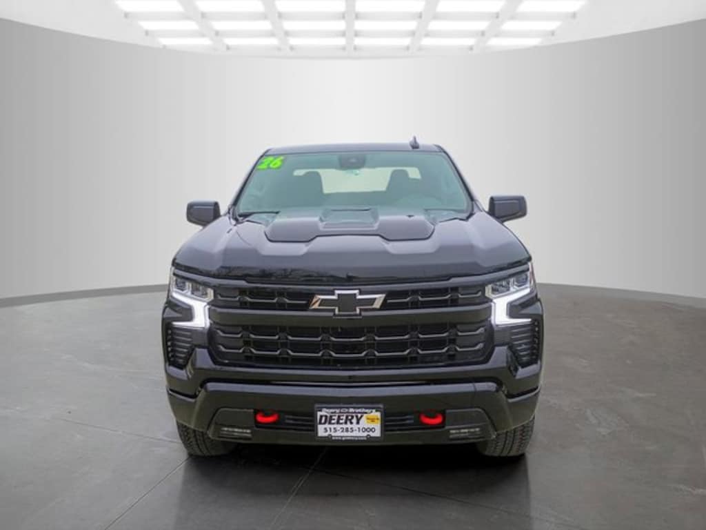 Black 2026 Chevrolet Convenience Package (10-Way Power Driver Seat with Lumbar, 120-Volt Bed Mounted Power Outlet, 120-Volt Interior Power Outlet, Dual Rear USB Ports (charge Only), Dual-Zone Automatic Climate Control, Electric Rear-Window Defogger, Heated Driver and Front Outboard Passenger Seats, Heated Steering Wheel, Keyless Open and Start, LED Cargo Area Lighting, Manual Tilt/Telescoping Steering Column, Remote Vehicle Starter System, Theft Deterrent System (unauthorized Entry), and Wrapped Steering Wheel), Convenience Package II (Hitch Guidance with Hitch View, in-Vehicle Trailering System App, Power Sliding Rear Window with Rear Defogger, Premium Bose 7-Speaker Sound System, and Universal Home Remote), Dark Essentials Package (Black Name Plates), Leather Package (Leather-Appointed Front Seat Trim), Preferred Equipment Group 2LT (12.3 Multicolor Reconfigurable Digital Display, 40/20/40 Front Split-Bench Seat, 6-Speaker Audio System, All-Weather Floor Liner, Auto-Locking Rear Differential, Bluetooth® For Phone, Cloth Seat Trim, Color-Keyed Carpeting Floor Covering, Deep-Tinted Glass, Electronic Cruise Control, EZ Lift Power Lock and Release Tailgate, Front LED Fog Lamps, HD Rear Vision Camera, Heated Power-Adjustable Outside Mirrors, High Gloss Black Mirror Caps, Inside Rearview Mirror with Tilt, Integrated Trailer Brake Controller, OnStar Services Capable, Performance Red Recovery Hooks, Power Front Windows with Driver Express Up/Down, Power Front Windows with Passenger Express Down, Power Rear Windows with Express Down, Rear 60/40 Folding Bench Seat (folds Up), SiriusXM with 360L Trial Subscription, Standard Tailgate, Steering Wheel Audio Controls, Teen Driver, Tire Pressure Monitoring System, Wheels: 20 x 9 High Gloss Black Painted Aluminum, and Wi-Fi Hot Spot Capable), Protection Package (Chevytec Spray-on Black Bedliner and Rear Wheelhouse Liners), Suspension Package (Heavy-Duty Air Filter and Hill Descent Control), Trailering Package (Hitch Guidance), Up-Level Rear Seat with Storage Package, 170 Amp Alternator, 2 USB Data Ports, 220 Amp Alternator, 4-Wheel Disc Brakes, 6 Speakers, ABS brakes, Air Conditioning, Alloy wheels, AM/FM radio: SiriusXM with 360L, Apple CarPlay/Android Auto, Auto High-beam Headlights, Automatic Emergency Braking, Automatic temperature control, Auxiliary External Transmission Oil Cooler, Black Exhaust Tip Bezels, Black Tailgate CHEVROLET Lettering, Brake assist, Compass, Delay-off headlights, Driver door bin, Driver vanity mirror, Dual Exhaust with Polished Outlets, Dual front impact airbags, Dual front side impact airbags, Electronic Stability Control, Electronic Transmission Range Selector Shifter, Emergency communication system: OnStar, External Engine Oil Cooler, Floor Mounted Center Console, Following Distance Indicator, Forward Collision Alert, Front anti-roll bar, Front Bucket Seats, Front Center Armrest w/Storage, Front dual zone A/C, Front fog lights, Front License Plate Kit, Front Pedestrian Braking, Front reading lights, Front wheel independent suspension, Fully automatic headlights, Heated door mirrors, Heated front seats, Heated steering wheel, Illuminated entry, IntelliBeam Automatic High Beam on/Off, Lane Keep Assist with Lane Departure Warning, Low tire pressure warning, Occupant sensing airbag, Outside temperature display, Overhead airbag, Overhead console, Panic alarm, Passenger door bin, Passenger vanity mirror, Power door mirrors, Power driver seat, Power steering, Power windows, Premium audio system: Chevrolet Infotainment 3 Premium, Radio data system, Radio: Chevrolet Infotainment 3 Premium System, Rear reading lights, Rear step bumper, Rear window defroster, Remote keyless entry, Security system, Singl Price includes: $4250 - Customer Cash. Exp. 04/30/2026 $500 - Bonus Cash. Exp. 04/30/2026 $3,000 - Exp. 06/30/2026$3,000 - $ExpDate$3,000 - $ExpDate$1,000 DEERY TRADE ASS