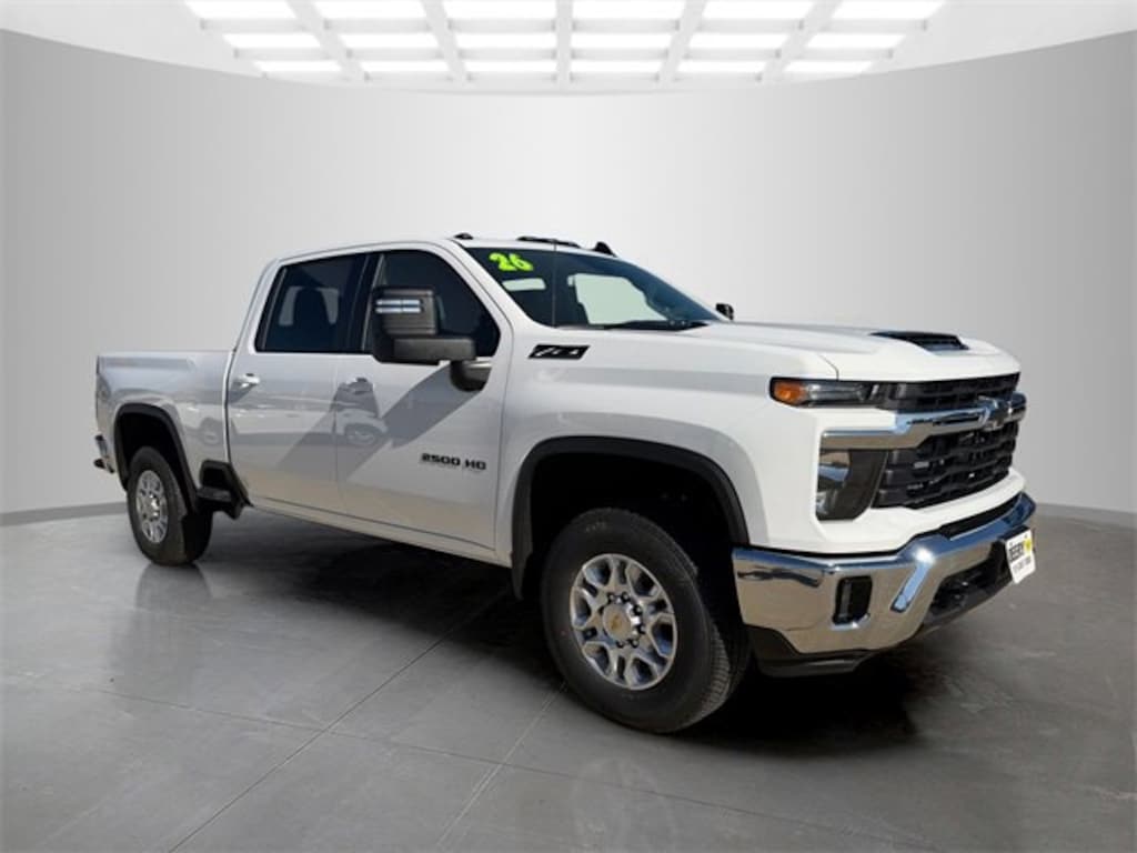 White 2026 Chevrolet Cloth Rear Seat w/Storage Package, Convenience Package (10-Way Power Driver Seat Adjuster w/Lumbar, Dual-Zone Automatic Climate Control, Front LED Fog Lamps, LED Cargo Area Lighting, and Manual Tilt & Telescoping Steering Column), Convenience Package II (Hitch Guidance w/Hitch View, In-Vehicle Trailering App System, Power Sliding Rear Window w/Defogger, and Universal Home Remote), Dark Essentials Package (LPO) (Black Name Plates (LPO), Black Tailgate Lettering (LPO), and Front Black Bowtie Emblem (LPO)), Gooseneck/5th Wheel Prep Package (Black Chevytec Spray-On Bedliner), Heat Package (Heated Driver & Front Outboard Passenger Seating and Heated Steering Wheel), Leather Package, Remote Start Package (Electric Rear-Window Defogger, Remote Vehicle Starter System, and Unauthorized Entry Theft-Deterrent System), Snow Plow Prep/Camper Package (220 Amp Alternator), Suspension Package, Up-Level Rear Seat w/Storage Package, Z71 Off-Road Package (Hill Descent Control and Off-Road Suspension), 120-Volt Bed Mounted Power Outlet, 120-Volt Interior Power Outlet, 17 Machined Aluminum Wheels, 170 Amp Alternator, 2 Charge/Data USB Ports Inside Center Console, 2-Speed Electronic Shift Transfer Case, 4-Way Manual Driver Seat Adjuster, 4-Wheel Disc Brakes, 6 Speakers, 6-Speaker Audio System, 720 Cold-Cranking Amps Heavy-Duty Battery, ABS brakes, Air Conditioning, Alloy wheels, AM/FM radio: SiriusXM with 360L, Apple CarPlay/Android Auto, Auto High-beam Headlights, Black Mirror Caps, Bluetooth® For Phone, Brake assist, Bumpers: chrome, Chevrolet Connected Access Capable, Cloth Seat Trim, Color-Keyed Carpeting Floor Covering, Compass, Deep-Tinted Glass, Delay-off headlights, Driver door bin, Driver vanity mirror, Dual front impact airbags, Dual front side impact airbags, Durabed Pickup Bed, Electronic Cruise Control w/Set & Resume Speed, Electronic Stability Control, Emergency communication system: OnStar, EZ Lift Power Lock & Release Tailgate, Floor-Mounted Center Console, Front 40/20/40 Split-Bench Seats w/Lockable Storage, Front anti-roll bar, Front Bucket Seats, Front Center Armrest w/Storage, Front reading lights, Front Rubberized Vinyl Floor Mats, Front wheel independent suspension, Fully automatic headlights, Halogen Reflector Headlamps, HD Rear Vision Camera, Heated door mirrors, Heated Vertical Trailering Mirrors, Illuminated entry, Keyless Open & Start, LED Smoked Amber Roof Marker Lamps, Low tire pressure warning, Occupant sensing airbag, OnStar Services Capable, Outside temperature display, Overhead airbag, Overhead console, Panic alarm, Passenger door bin, Passenger vanity mirror, Power Door Locks, Power door mirrors, Power Front Windows w/Driver Express Up/Down, Power Front Windows w/Passenger Express Down, Power Rear Windows w/Express Down, Power steering, Power windows, Premium audio system: Chevrolet Infotainment 3 Premium, Push Button Start, Pwr Up/Down Tailgate Function w/Pwr Lock & Release, Radio: Chevrolet Infotainment 3 Premium System, Rear 60/40 Folding Bench Seat (Folds Up), Rear reading lights, Rear Rubberized Vinyl Floor Mats, Rear step bumper, Rear Wheelhouse Liners, Remote keyless entry, SiriusXM w/360L Trial Subscription, Speed control, Split folding rear seat, Standard Tailgate, Steering Wheel Audio Controls, Steering wheel mounted audio controls, Tachometer, Tilt steering wheel, Traction control, Trip computer, Turn signal indicator mirrors, Variably intermittent wipers, Voltmeter, Wheels: 18 Machined Alum w/Silver Painted Accents, Wi-Fi Hotspot Capable, Wireless Charging, Wireless Phone Projection, and Wrapped Steering Wheel. Silverado 2500HD 4D Crew Cab LT Duramax 6.6L V8 Turbodiesel 10-Speed Automatic 4WD Price includes: $1000 - Customer Cash. Exp. 01/02/2026