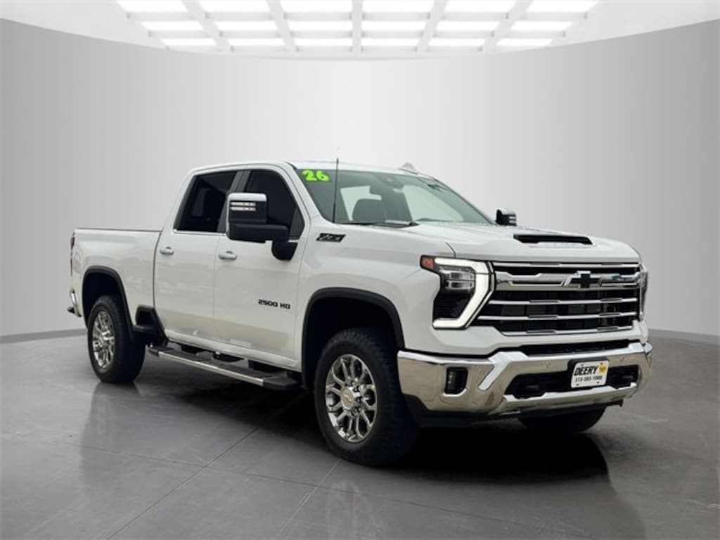 Summit White 2026 Chevrolet Gooseneck/5th Wheel Prep Package, LTZ Convenience Package (Front Bucket Seats), LTZ Convenience Package II (Adaptive Cruise Control), Safety Package, Snow Plow Prep/Camper Package (220 Amp Alternator), Suspension Package, Up-Level Rear Seat w/Storage Package, Z71 Off-Road Package (Hill Descent Control), 120-Volt Bed Mounted Power Outlet, 120-Volt Interior Power Outlet, 170 Amp Alternator, 4-Wheel Disc Brakes, 6 Speakers, 6-Speaker Audio System, 6 Rectangular Chromed Tubular Assist Steps, 720 Cold-Cranking Amps Heavy-Duty Battery, ABS brakes, Air Conditioning, Alloy wheels, AM/FM radio: SiriusXM with 360L, Apple CarPlay/Android Auto, Auto High-beam Headlights, Auto-dimming door mirrors, Auto-Dimming Inside Rear-View Mirror, Auto-dimming Rear-View mirror, Automatic temperature control, Black Name Plates (LPO), Black Tailgate Lettering (LPO), Bluetooth® For Phone, Brake assist, Bumpers: chrome, Chevrolet Connected Access Capable, Chrome Door Handles, Chrome Mirror Caps, Color-Keyed Carpeting Floor Covering, Compass, Deep-Tinted Glass, Delay-off headlights, Driver door bin, Driver Memory, Driver vanity mirror, Dual front impact airbags, Dual front side impact airbags, Durabed Pickup Bed, Electric Rear-Window Defogger, Electronic Cruise Control w/Set & Resume Speed, Electronic Stability Control, Emergency communication system: OnStar, EZ Lift Power Lock & Release Tailgate, Front 40/20/40 Split-Bench Seats w/Lockable Storage, Front anti-roll bar, Front Black Bowtie Emblem (LPO), Front Center Armrest w/Storage, Front dual zone A/C, Front fog lights, Front LED Fog Lamps, Front Rain-Sensing Wipers, Front reading lights, Front Rubberized Vinyl Floor Mats, Front wheel independent suspension, Fully automatic headlights, HD Rear Vision Camera, Heated door mirrors, Heated front seats, Heated Steering Wheel, Heated steering wheel, Hitch Guidance w/Hitch View, Illuminated entry, In-Vehicle Trailering App System, Keyless Open & Start, Low tire pressure warning, Memory seat, Occupant sensing airbag, OnStar Services Capable, Outside temperature display, Overhead airbag, Overhead console, Panic alarm, Passenger door bin, Passenger vanity mirror, Perf Leather-Appointed Front Outboard Seat Trim, Power Door Locks, Power door mirrors, Power driver seat, Power Front Windows w/Driver Express Up/Down, Power passenger seat, Power Rear Windows w/Express Down, Power steering, Power Sunroof, Power windows, Premium audio system: Chevrolet Infotainment 3 Premium, Push Button Start, Radio: Chevrolet Infotainment 3 Premium System, Rain sensing wipers, Rear reading lights, Rear Rubberized Vinyl Floor Mats, Rear seat center armrest, Rear step bumper, Rear Wheelhouse Liners, Rear window defroster, Remote keyless entry, Remote Vehicle Starter System, Security system, Speed control, Speed-sensing steering, Split folding rear seat, Standard Tailgate, Steering Wheel Audio Controls, Steering wheel mounted audio controls, Tachometer, Telescoping steering wheel, Tilt steering wheel, Traction control, Trip computer, Turn signal indicator mirrors, Unauthorized Entry Theft-Deterrent System, Variably intermittent wipers, Voltmeter, Wheels: 20 12-Spoke Bright Finish Aluminum, Wi-Fi Hotspot Capable, Wireless Phone Projection, and Wrapped Steering Wheel. Silverado 2500HD 4D Crew Cab LTZ Duramax 6.6L V8 Turbodiesel 10-Speed Automatic 4WD Price includes: $1000 - Customer Cash. Exp. 01/02/2026