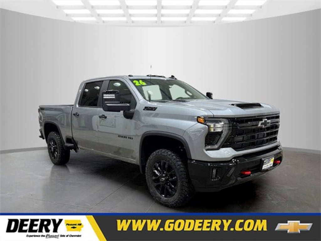 Sterling Gray Metallic 2026 Chevrolet Cloth Rear Seat with Storage Package, Convenience Package (10-Way Power Driver Seat Adjuster with Lumbar, Dual-Zone Automatic Climate Control, Front LED Fog Lamps, LED Cargo Area Lighting, and Manual Tilt and Telescoping Steering Column), Convenience Package II (Hitch Guidance with Hitch View, in-Vehicle Trailering App System, Power Sliding Rear Window with Defogger, and Universal Home Remote), Heat Package (Heated Driver and Front Outboard Passenger Seating and Heated Steering Wheel), Leather Package, Remote Start Package (Electric Rear-Window Defogger, Remote Vehicle Starter System, and Unauthorized Entry Theft-Deterrent System), Safety Package (Bed View Camera with Two Trailer Camera Provisions, HD Surround Vision, Rear Cross Traffic Alert, Trailer Camera Provisions, Trailer Side Blind Zone Alert, and Ultrasonic Front and Rear Park Assist), Snow Plow Prep/Camper Package (220 Amp Alternator), Suspension Package, Trail Boss Package (Animated LED Projector Headlamps, Auto-Dimming Inside Rear-View Mirror, Black Chevytec Spray-on Bedliner, Black Grille Bar with Chevy Black Bow Tie, Front Frame-Mounted Red Recovery Hooks, Heated and Auto-Dimming Vertical Trailering Mirrors, High Gloss Black Door Handles, High Gloss Black Front Bumper, High Gloss Black Mirror Caps, High Gloss Black Rear Bumper, and Wheels: 20 High Gloss Black Painted), Up-Level Rear Seat with Storage Package, Z71 Off-Road Package (Hill Descent Control and Off-Road Suspension), 120-Volt Bed Mounted Power Outlet, 120-Volt Interior Power Outlet, 17 Machined Aluminum Wheels, 170 Amp Alternator, 1st and 2nd Row All-Weather Floor Liners, 2 Charge/Data USB Ports Inside Center Console, 2-Speed Electronic Shift Transfer Case, 4-Way Manual Driver Seat Adjuster, 4-Wheel Disc Brakes, 6 Speakers, 6-Speaker Audio System, 720 Cold-Cranking Amps Heavy-Duty Battery, ABS brakes, Air Conditioning, Alloy wheels, AM/FM radio: SiriusXM with 360L, Apple CarPlay/Android Auto, Auto High-beam Headlights, Black Mirror Caps, Bluetooth® For Phone, Body-Color Front Bumper, Body-Color Rear Bumper, Brake assist, Bumpers: chrome, Chevrolet Connected Access Capable, Cloth Seat Trim, Color-Keyed Carpeting Floor Covering, Compass, Deep-Tinted Glass, Delay-off headlights, Driver door bin, Driver vanity mirror, Dual front impact airbags, Dual front side impact airbags, Durabed Pickup Bed, Electronic Cruise Control with Set and Resume Speed, Electronic Stability Pr