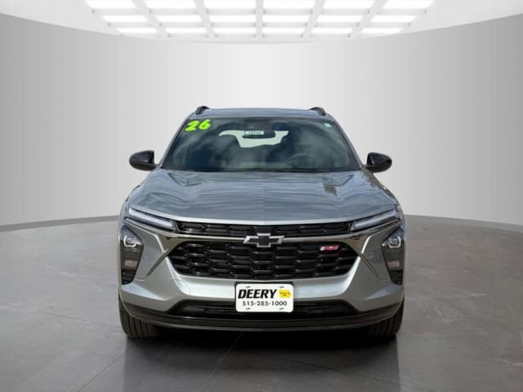 Sterling Gray Metallic 2026 Chevrolet Driver Confidence Package (Adaptive Cruise Control, Lane Change Alert with Side Blind Zone Alert, Rear Cross Traffic Alert, and Rear Park Assist), Sunroof Package (Power Sliding Glass Sunroof with Manual Shade and Wireless Charging), 2-Way Adjustable Front Head Restraints, 2-Way Power Driver Lumbar Seat Adjuster, 3.50 Final Drive Axle Ratio, 4-Way Manual Front Passenger Seat Adjuster, 4-Wheel Disc Brakes, 6 Speakers, 6-Speaker Audio System Feature, 8-Way Power Driver Seat Adjuster, ABS brakes, Air Conditioning, Alloy wheels, AM/FM radio: SiriusXM, Auto High-beam Headlights, Automatic temperature control, Brake assist, Bumpers: body-color, Compass, Delay-off headlights, Driver door bin, Driver vanity mirror, Dual front impact airbags, Dual front side impact airbags, Electronic Stability Control, Emergency communication system: OnStar One Essentials, Evotex Seat Trim, Exterior Parking Camera Rear, Front and Rear Jet Black All-Weather Floor Liners, Front anti-roll bar, Front Bucket Seats, Front Center Armrest, Front reading lights, Front wheel independent suspension, Fully automatic headlights, Heated door mirrors, Heated Driver and Front Passenger Seats, Heated front seats, Heated steering wheel, Illuminated entry, Leather steering wheel, Low tire pressure warning, Occupant sensing airbag, Outside temperature display, Overhead airbag, Overhead console, Panic alarm, Passenger door bin, Passenger vanity mirror, Power door mirrors, Power driver seat, Power steering, Power windows, Premium audio system: Chevrolet Infotainment 3, Radio data system, Radio: AM/FM Stereo Audio System, Rear window defroster, Rear window wiper, Remote keyless entry, Security system, SiriusXM Trial Subscription, Speed control, Split folding rear seat, Spoiler, Sport steering wheel, Steering wheel mounted audio controls, Tachometer, Telescoping steering wheel, Tilt steering wheel, Traction control, Trip computer, Variably intermittent wipers, Wheels: 19 Black-Painted Machined Aluminum, and Wireless Apple CarPlay/Wireless Android Auto. Trax 4D Sport Utility 2RS ECOTEC 1.2L Turbo 28/32 City/Highway MPG 6-Speed Automatic FWD