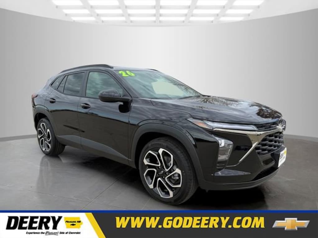 Mosaic Black Metallic 2026 Chevrolet Driver Confidence Package (Adaptive Cruise Control, Lane Change Alert with Side Blind Zone Alert, Rear Cross Traffic Alert, and Rear Park Assist), Sunroof Package (Power Sliding Glass Sunroof with Manual Shade and Wireless Charging), 2-Way Adjustable Front Head Restraints, 2-Way Power Driver Lumbar Seat Adjuster, 3.50 Final Drive Axle Ratio, 4-Way Manual Front Passenger Seat Adjuster, 4-Wheel Disc Brakes, 6 Speakers, 6-Speaker Audio System Feature, 8-Way Power Driver Seat Adjuster, ABS brakes, Air Conditioning, Alloy wheels, AM/FM radio: SiriusXM, Auto High-beam Headlights, Automatic temperature control, Brake assist, Bumpers: body-color, Compass, Delay-off headlights, Driver door bin, Driver vanity mirror, Dual front impact airbags, Dual front side impact airbags, Electronic Stability Control, Emergency communication system: OnStar One Essentials, Evotex Seat Trim, Exterior Parking Camera Rear, Front and Rear Jet Black All-Weather Floor Liners, Front anti-roll bar, Front Bucket Seats, Front Center Armrest, Front reading lights, Front wheel independent suspension, Fully automatic headlights, Heated door mirrors, Heated Driver and Front Passenger Seats, Heated front seats, Heated steering wheel, Illuminated entry, Leather steering wheel, Low tire pressure warning, Occupant sensing airbag, Outside temperature display, Overhead airbag, Overhead console, Panic alarm, Passenger door bin, Passenger vanity mirror, Power door mirrors, Power driver seat, Power steering, Power windows, Premium audio system: Chevrolet Infotainment 3, Radio data system, Radio: AM/FM Stereo Audio System, Rear window defroster, Rear window wiper, Remote keyless entry, Security system, SiriusXM Trial Subscription, Speed control, Split folding rear seat, Spoiler, Sport steering wheel, Steering wheel mounted audio controls, Tachometer, Telescoping steering wheel, Tilt steering wheel, Traction control, Trip computer, Variably intermittent wipers, Wheels: 19 Black-Painted Machined Aluminum, and Wireless Apple CarPlay/Wireless Android Auto. Trax 4D Sport Utility 2RS ECOTEC 1.2L Turbo 28/32 City/Highway MPG 6-Speed Automatic FWD Price includes: $500 - Customer Cash. Exp. 03/31/2026