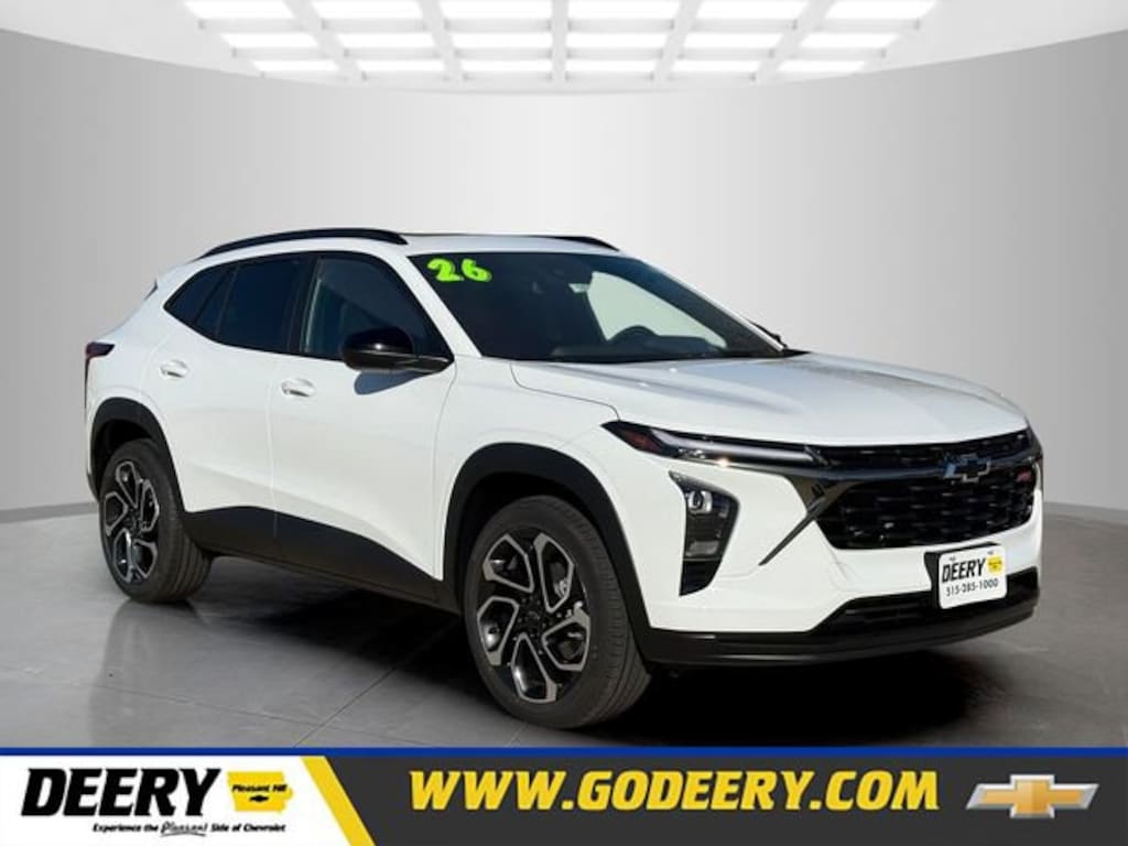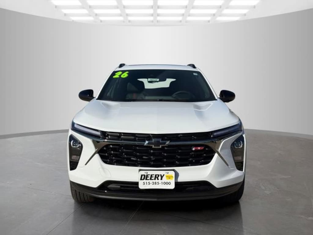Summit White 2026 Chevrolet Driver Confidence Package (Adaptive Cruise Control, Lane Change Alert with Side Blind Zone Alert, Rear Cross Traffic Alert, and Rear Park Assist), Sunroof Package (Power Sliding Glass Sunroof with Manual Shade and Wireless Charging), 2-Way Adjustable Front Head Restraints, 2-Way Power Driver Lumbar Seat Adjuster, 3.50 Final Drive Axle Ratio, 4-Way Manual Front Passenger Seat Adjuster, 4-Wheel Disc Brakes, 6 Speakers, 6-Speaker Audio System Feature, 8-Way Power Driver Seat Adjuster, ABS brakes, Air Conditioning, Alloy wheels, AM/FM radio: SiriusXM, Auto High-beam Headlights, Automatic temperature control, Brake assist, Bumpers: body-color, Compass, Delay-off headlights, Driver door bin, Driver vanity mirror, Dual front impact airbags, Dual front side impact airbags, Electronic Stability Control, Emergency communication system: OnStar One Essentials, Evotex Seat Trim, Exterior Parking Camera Rear, Front and Rear Jet Black All-Weather Floor Liners, Front anti-roll bar, Front Bucket Seats, Front Center Armrest, Front reading lights, Front wheel independent suspension, Fully automatic headlights, Heated door mirrors, Heated Driver and Front Passenger Seats, Heated front seats, Heated steering wheel, Illuminated entry, Leather steering wheel, Low tire pressure warning, Occupant sensing airbag, Outside temperature display, Overhead airbag, Overhead console, Panic alarm, Passenger door bin, Passenger vanity mirror, Power door mirrors, Power driver seat, Power steering, Power windows, Premium audio system: Chevrolet Infotainment 3, Radio data system, Radio: AM/FM Stereo Audio System, Rear window defroster, Rear window wiper, Remote keyless entry, Security system, SiriusXM Trial Subscription, Speed control, Split folding rear seat, Spoiler, Sport steering wheel, Steering wheel mounted audio controls, Tachometer, Telescoping steering wheel, Tilt steering wheel, Traction control, Trip computer, Variably intermittent wipers, Wheels: 19 Black-Painted Machined Aluminum, and Wireless Apple CarPlay/Wireless Android Auto. Trax 4D Sport Utility 2RS ECOTEC 1.2L Turbo 28/32 City/Highway MPG 6-Speed Automatic FWD Price includes: $500 - Customer Cash. Exp. 03/31/2026