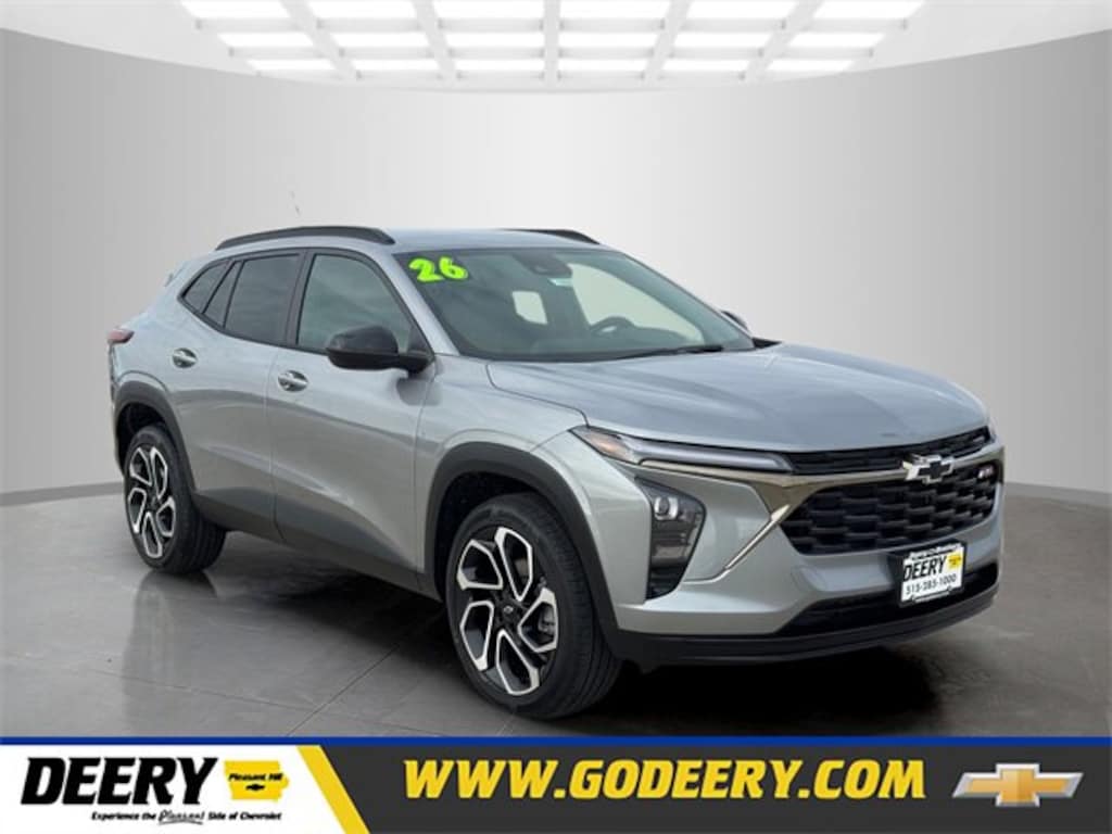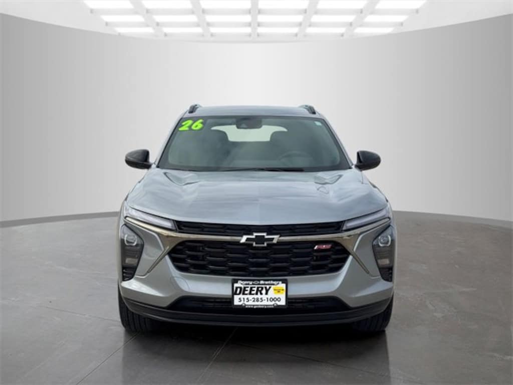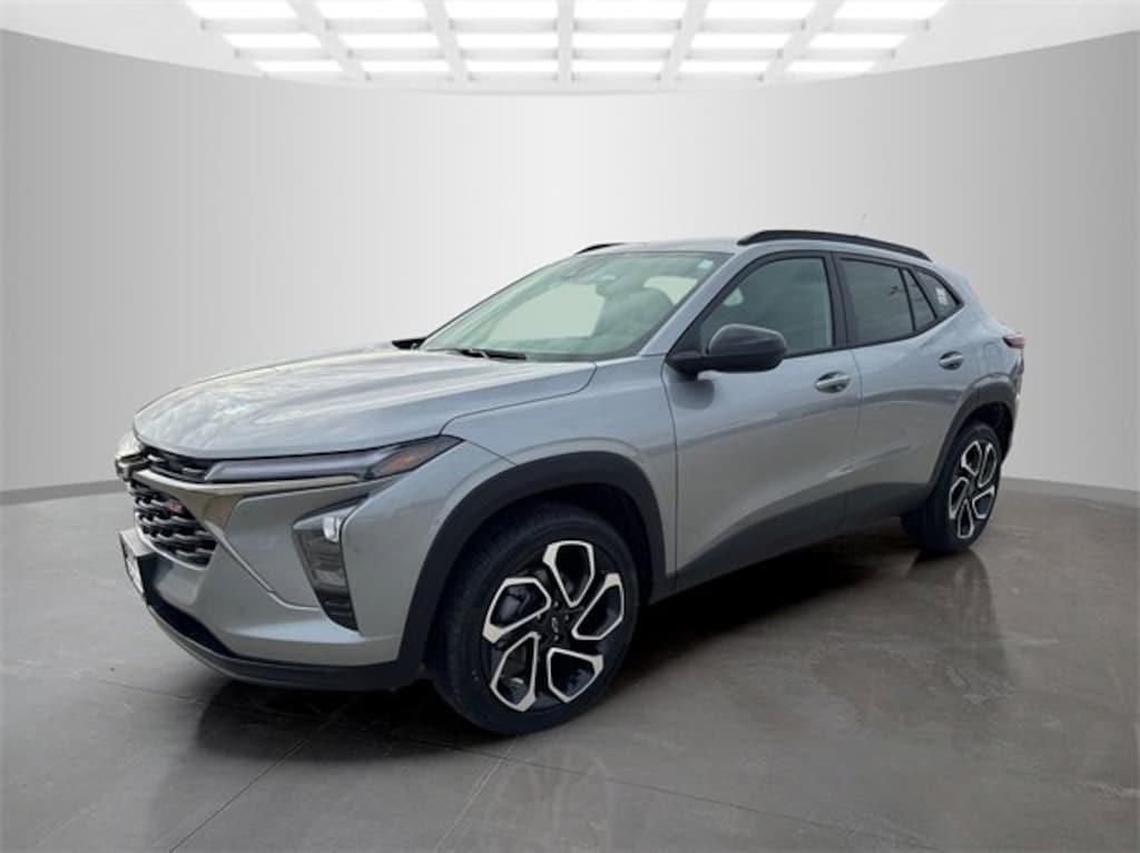 Sterling Gray Metallic 2026 Chevrolet Driver Confidence Package (Adaptive Cruise Control, Lane Change Alert with Side Blind Zone Alert, Rear Cross Traffic Alert, and Rear Park Assist), 3.50 Final Drive Axle Ratio, 8-Way Power Driver Seat Adjuster, Power driver seat, Power steering, Power windows, Remote keyless entry, Steering wheel mounted audio controls, Wheels: 19 Black-Painted Machined Aluminum, 2-Way Adjustable Front Head Restraints, 2-Way Power Driver Lumbar Seat Adjuster, 4-Way Manual Front Passenger Seat Adjuster, 4-Wheel Disc Brakes, 6 Speakers, 6-Speaker Audio System Feature, ABS brakes, Air Conditioning, Alloy wheels, AM/FM radio: SiriusXM, Auto High-beam Headlights, Automatic temperature control, Brake assist, Bumpers: body-color, Compass, Delay-off headlights, Driver door bin, Driver vanity mirror, Dual front impact airbags, Dual front side impact airbags, Electronic Stability Control, Emergency communication system: OnStar One Essentials, Evotex Seat Trim, Exterior Parking Camera Rear, Front anti-roll bar, Front Bucket Seats, Front Center Armrest, Front reading lights, Front wheel independent suspension, Fully automatic headlights, Heated door mirrors, Heated Driver and Front Passenger Seats, Heated front seats, Heated steering wheel, Illuminated entry, Leather steering wheel, Low tire pressure warning, Occupant sensing airbag, Outside temperature display, Overhead airbag, Overhead console, Panic alarm, Passenger door bin, Passenger vanity mirror, Power door mirrors, Premium audio system: Chevrolet Infotainment 3, Radio data system, Radio: AM/FM Stereo Audio System, Rear window defroster, Rear window wiper, Security system, SiriusXM Trial Subscription, Speed control, Split folding rear seat, Spoiler, Sport steering wheel, Tachometer, Telescoping steering wheel, Tilt steering wheel, Traction control, Trip computer, Variably intermittent wipers, and Wireless Apple CarPlay/Wireless Android Auto. Trax 4D Sport Utility 2RS ECOTEC 1.2L Turbo 28/32 City/Highway MPG 6-Speed Automatic FWD