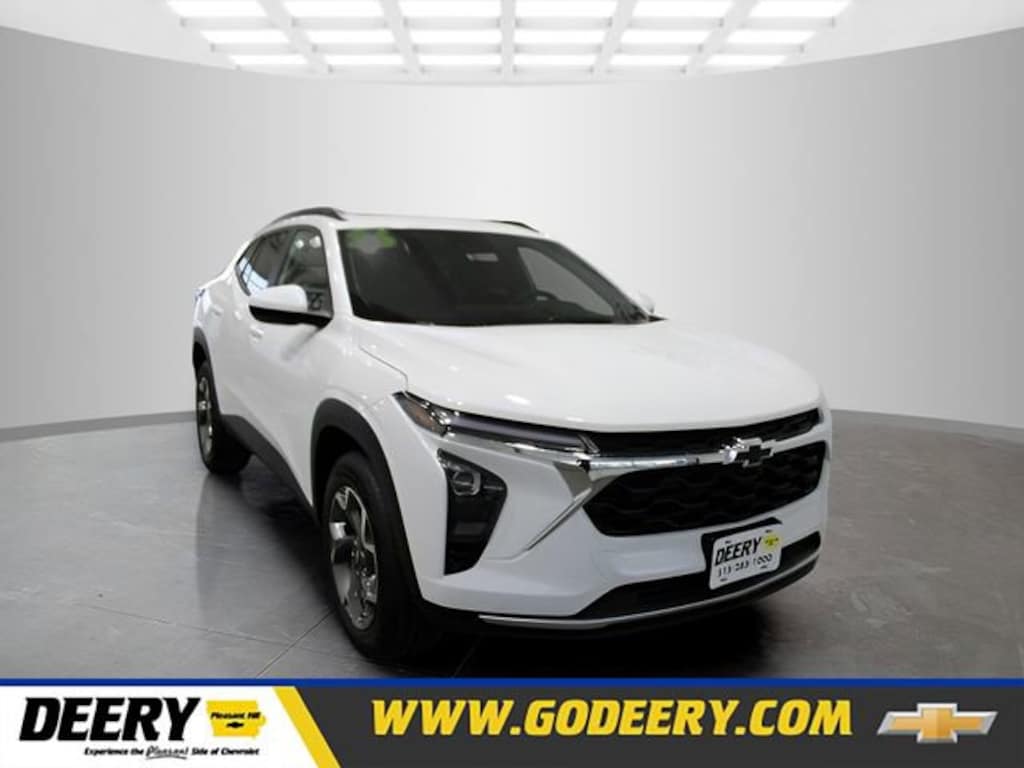Summit White 2026 Chevrolet Driver Confidence Package (Adaptive Cruise Control, Rear Cross Traffic Alert, and Rear Park Assist), License Plate Front Mounting Package, LT Convenience Package (Front Doors Keyless Open, Heated Power-Adjustable Outside Mirrors, Heated Steering Wheel, and Wrapped Steering Wheel), Preferred Equipment Group 1LT, Sunroof Package (Wireless Charging), 2-Way Adjustable Front Head Restraints, 3.50 Final Drive Axle Ratio, 4-Way Manual Front Passenger Seat Adjuster, 4-Wheel Disc Brakes, 6 Speakers, 6-Speaker Audio System Feature, 6-Way Manual Driver Seat Adjuster, ABS brakes, Air Conditioning, Alloy wheels, AM/FM radio: SiriusXM, Auto High-beam Headlights, Automatic temperature control, Brake assist, Bumpers: body-color, Cloth/Evotex Seat Trim, Compass, Delay-off headlights, Driver door bin, Driver vanity mirror, Dual front impact airbags, Dual front side impact airbags, Electronic Stability Control, Emergency communication system: OnStar One Essentials, Exterior Parking Camera Rear, Front anti-roll bar, Front Bucket Seats, Front Center Armrest, Front reading lights, Front wheel independent suspension, Fully automatic headlights, Illuminated entry, Low tire pressure warning, Occupant sensing airbag, Outside temperature display, Overhead airbag, Overhead console, Panic alarm, Passenger door bin, Passenger vanity mirror, Power door mirrors, Power steering, Power windows, Premium audio system: Chevrolet Infotainment 3, Radio data system, Radio: AM/FM Stereo Audio System, Rear window defroster, Rear window wiper, Remote keyless entry, Security system, SiriusXM Trial Subscription, Speed control, Split folding rear seat, Spoiler, Steering wheel mounted audio controls, Tachometer, Telescoping steering wheel, Tilt steering wheel, Traction control, Trip computer, Variably intermittent wipers, and Wireless Apple CarPlay/Wireless Android Auto. Trax 4D Sport Utility LT ECOTEC 1.2L Turbo 28/32 City/Highway MPG 6-Speed Automatic FWD Price includes: $500 - Customer Cash. Exp. 03/31/2026