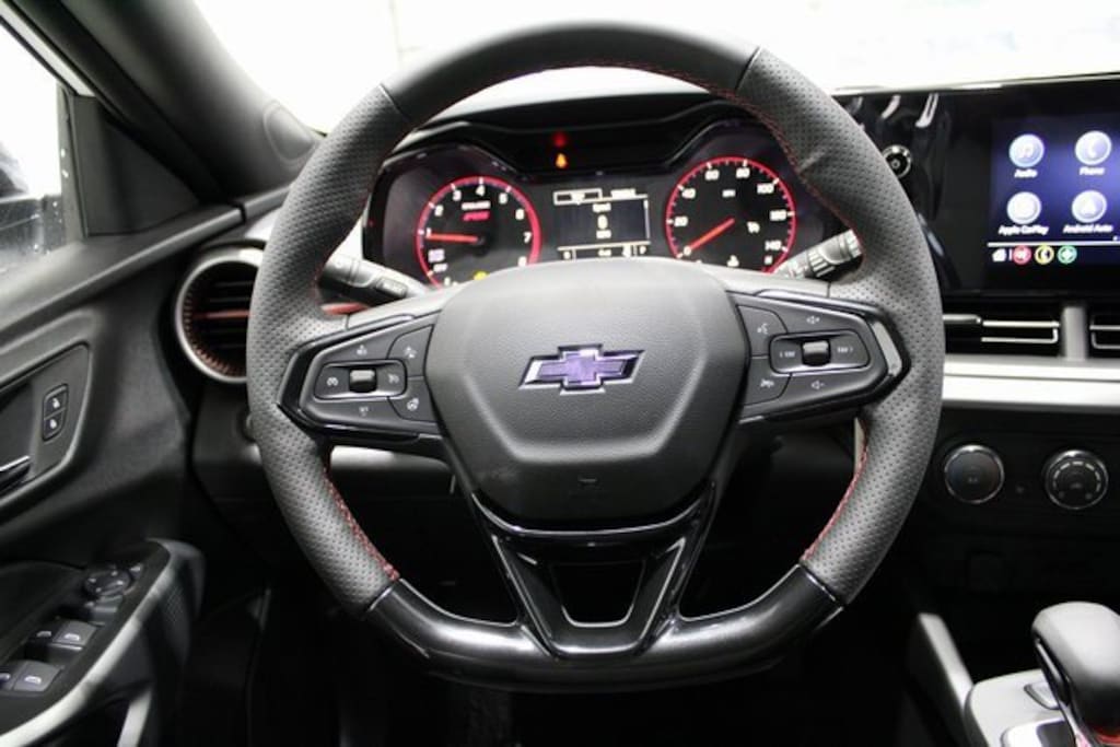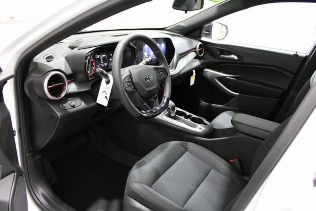Summit White 2026 Chevrolet Driver Confidence Package (Lane Change Alert w/Side Blind Zone Alert, Rear Cross Traffic Alert, and Rear Park Assist), License Plate Front Mounting Package, Preferred Equipment Group 1RS, 2-Way Adjustable Front Head Restraints, 3.50 Final Drive Axle Ratio, 4 Speakers, 4-Speaker Audio System Feature, 4-Way Manual Front Passenger Seat Adjuster, 4-Wheel Disc Brakes, 6-Way Manual Driver Seat Adjuster, ABS brakes, Air Conditioning, Alloy wheels, AM/FM radio: SiriusXM, Auto High-beam Headlights, Brake assist, Bumpers: body-color, Cloth Seat Trim, Compass, Delay-off headlights, Driver door bin, Driver vanity mirror, Dual front impact airbags, Dual front side impact airbags, Electronic Stability Control, Emergency communication system: OnStar One Essentials, Exterior Parking Camera Rear, Front anti-roll bar, Front Bucket Seats, Front Center Armrest, Front reading lights, Front wheel independent suspension, Fully automatic headlights, Heated door mirrors, Heated Driver & Front Passenger Seats, Heated front seats, Heated steering wheel, Illuminated entry, Leather steering wheel, Low tire pressure warning, Occupant sensing airbag, Outside temperature display, Overhead airbag, Overhead console, Panic alarm, Passenger door bin, Passenger vanity mirror, Power door mirrors, Power steering, Power windows, Premium audio system: Chevrolet Infotainment 3, Radio data system, Radio: Chevrolet Infotainment 3 System w/AM/FM, Rear window defroster, Rear window wiper, Remote keyless entry, Security system, SiriusXM Trial Subscription, Speed control, Split folding rear seat, Spoiler, Sport steering wheel, Steering wheel mounted audio controls, Tachometer, Telescoping steering wheel, Tilt steering wheel, Traction control, Trip computer, Variably intermittent wipers, Wheels: 18 Black-Painted Machined Aluminum, and Wireless Apple CarPlay/Wireless Android Auto. Trax 4D Sport Utility 1RS ECOTEC 1.2L Turbo 28/32 City/Highway MPG 6-Speed Automatic FWD