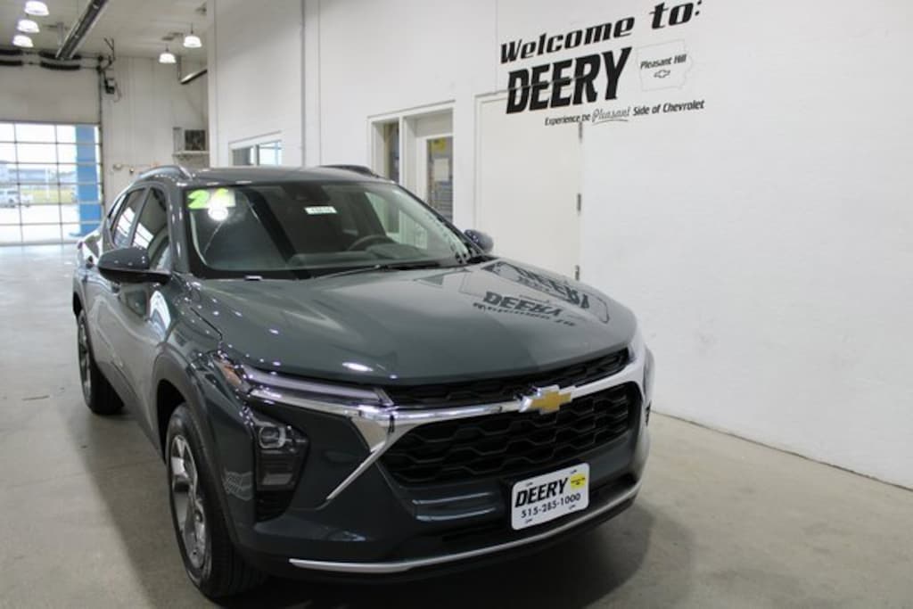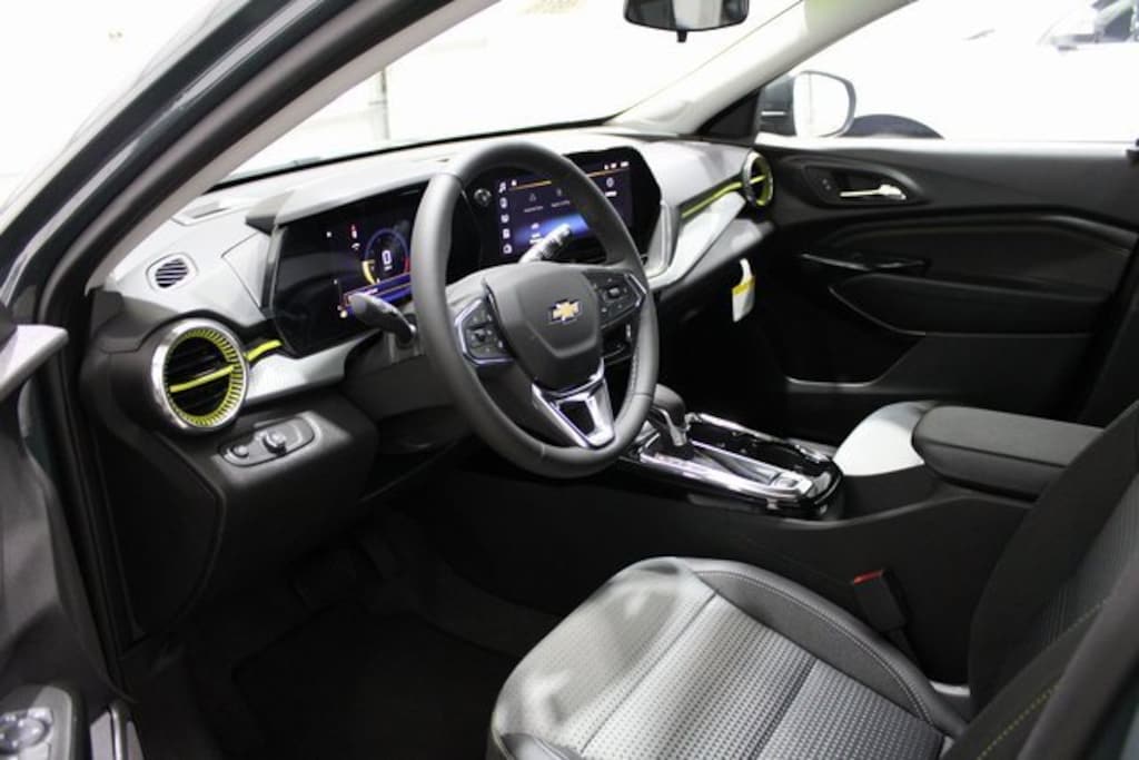Cypress Gray 2026 Chevrolet ABS brakes, Alloy wheels, Compass, Electronic Stability Control, Illuminated entry, Low tire pressure warning, Remote keyless entry, Traction control, 2-Way Adjustable Front Head Restraints, 3.50 Final Drive Axle Ratio, 4-Way Manual Front Passenger Seat Adjuster, 4-Wheel Disc Brakes, 6 Speakers, 6-Speaker Audio System Feature, 6-Way Manual Driver Seat Adjuster, Air Conditioning, AM/FM radio: SiriusXM, Auto High-beam Headlights, Automatic temperature control, Brake assist, Bumpers: body-color, Cloth/Evotex Seat Trim, Delay-off headlights, Driver door bin, Driver vanity mirror, Dual front impact airbags, Dual front side impact airbags, Emergency communication system: OnStar One Essentials, Exterior Parking Camera Rear, Front anti-roll bar, Front Bucket Seats, Front Center Armrest, Front reading lights, Front wheel independent suspension, Fully automatic headlights, Occupant sensing airbag, Outside temperature display, Overhead airbag, Overhead console, Panic alarm, Passenger door bin, Passenger vanity mirror, Power door mirrors, Power steering, Power windows, Premium audio system: Chevrolet Infotainment 3, Radio data system, Radio: AM/FM Stereo Audio System, Rear window defroster, Rear window wiper, Security system, SiriusXM Trial Subscription, Speed control, Split folding rear seat, Spoiler, Steering wheel mounted audio controls, Tachometer, Telescoping steering wheel, Tilt steering wheel, Trip computer, Variably intermittent wipers, Wheels: 17 Gray-Painted Machined Aluminum, and Wireless Apple CarPlay/Wireless Android Auto. Trax 4D Sport Utility LT ECOTEC 1.2L Turbo 28/32 City/Highway MPG 6-Speed Automatic FWD