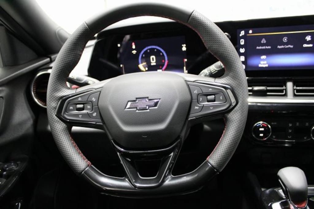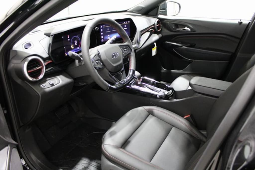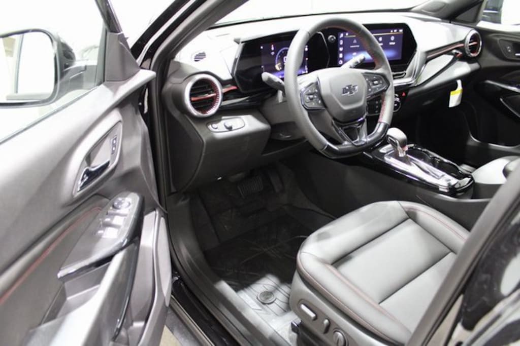 Mosaic Black Metallic 2026 Chevrolet Driver Confidence Package (Adaptive Cruise Control, Lane Change Alert w/Side Blind Zone Alert, Rear Cross Traffic Alert, and Rear Park Assist), License Plate Front Mounting Package, Preferred Equipment Group 2RS, Sunroof Package (Power Sliding Glass Sunroof w/Manual Shade and Wireless Charging), 2-Way Adjustable Front Head Restraints, 2-Way Power Driver Lumbar Seat Adjuster, 3.50 Final Drive Axle Ratio, 4-Way Manual Front Passenger Seat Adjuster, 4-Wheel Disc Brakes, 6 Speakers, 6-Speaker Audio System Feature, 8-Way Power Driver Seat Adjuster, ABS brakes, Air Conditioning, Alloy wheels, AM/FM radio: SiriusXM, Auto High-beam Headlights, Automatic temperature control, Brake assist, Bumpers: body-color, Compass, Delay-off headlights, Driver door bin, Driver vanity mirror, Dual front impact airbags, Dual front side impact airbags, Electronic Stability Control, Emergency communication system: OnStar One Essentials, Evotex Seat Trim, Exterior Parking Camera Rear, Front & Rear Jet Black All-Weather Floor Liners (LPO), Front anti-roll bar, Front Bucket Seats, Front Center Armrest, Front reading lights, Front wheel independent suspension, Fully automatic headlights, Heated door mirrors, Heated Driver & Front Passenger Seats, Heated front seats, Heated steering wheel, Illuminated entry, Leather steering wheel, Low tire pressure warning, Occupant sensing airbag, Outside temperature display, Overhead airbag, Overhead console, Panic alarm, Passenger door bin, Passenger vanity mirror, Power door mirrors, Power driver seat, Power steering, Power windows, Premium audio system: Chevrolet Infotainment 3, Radio data system, Radio: AM/FM Stereo Audio System, Rear window defroster, Rear window wiper, Remote keyless entry, Security system, SiriusXM Trial Subscription, Speed control, Split folding rear seat, Spoiler, Sport steering wheel, Steering wheel mounted audio controls, Tachometer, Telescoping steering wheel, Tilt steering wheel, Traction control, Trip computer, Variably intermittent wipers, Wheels: 19 Black-Painted Machined Aluminum, and Wireless Apple CarPlay/Wireless Android Auto. Trax 4D Sport Utility 2RS ECOTEC 1.2L Turbo 28/32 City/Highway MPG 6-Speed Automatic FWD